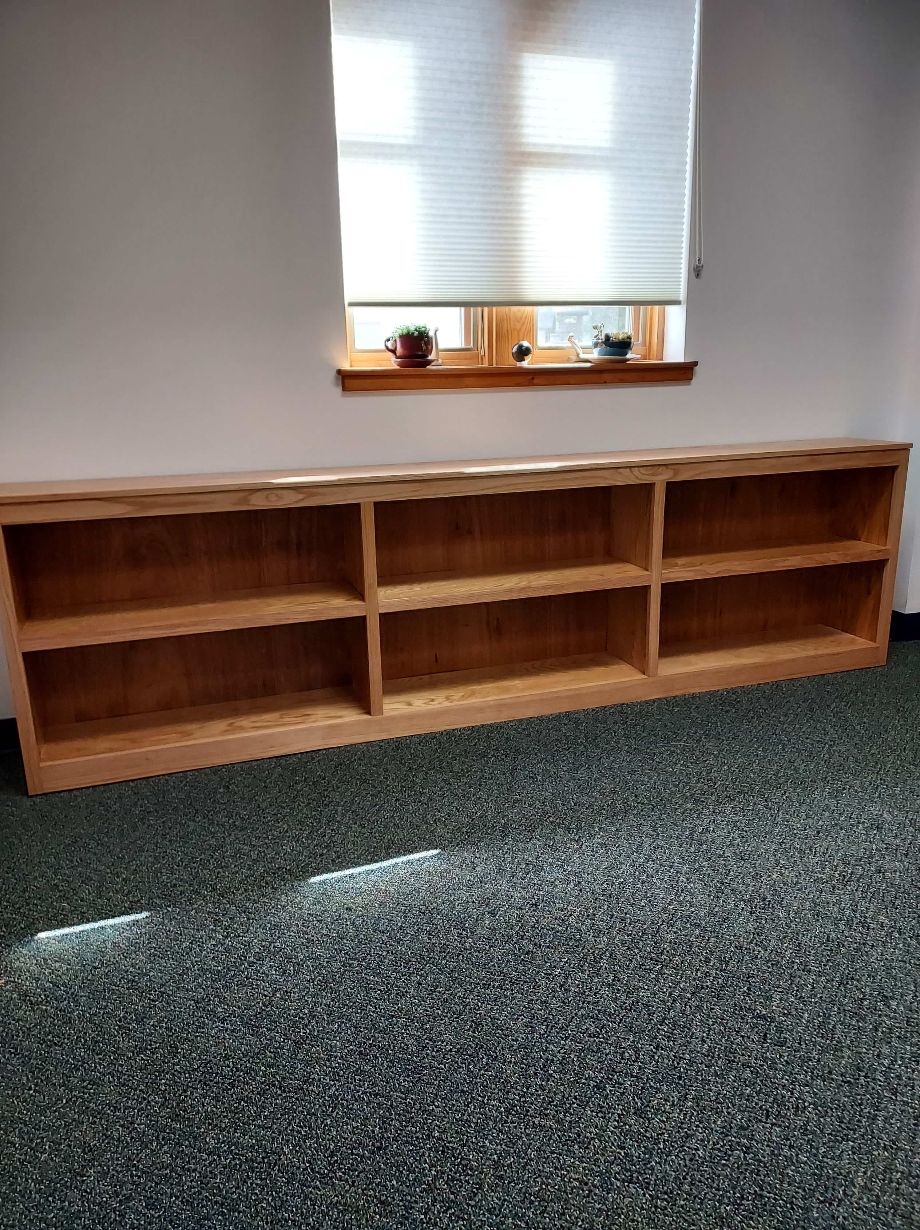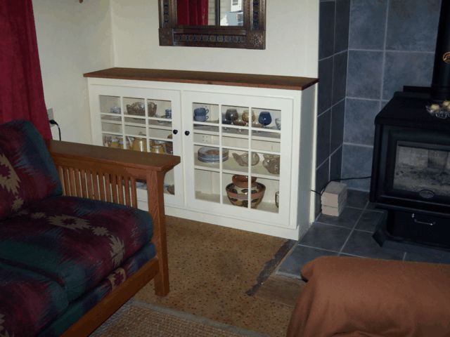 This is a cabinet I made for my own home. It has adjustable shelves, a painted cabinet case, and oak top. |