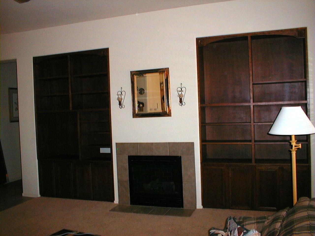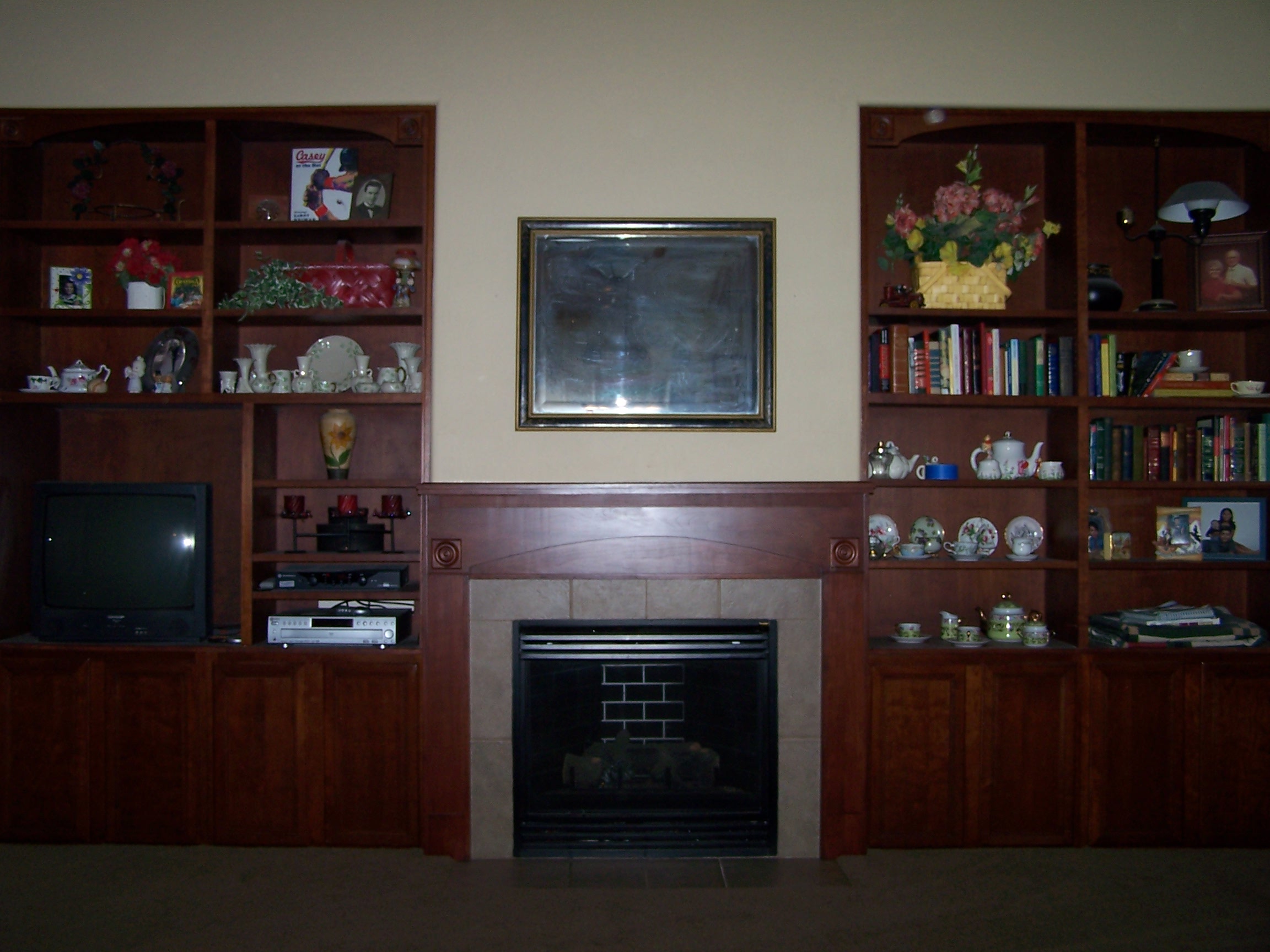 Here is the Entertainment Center with completed mantel and fireplace surround. |